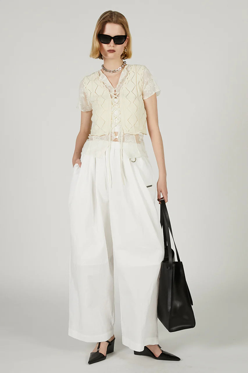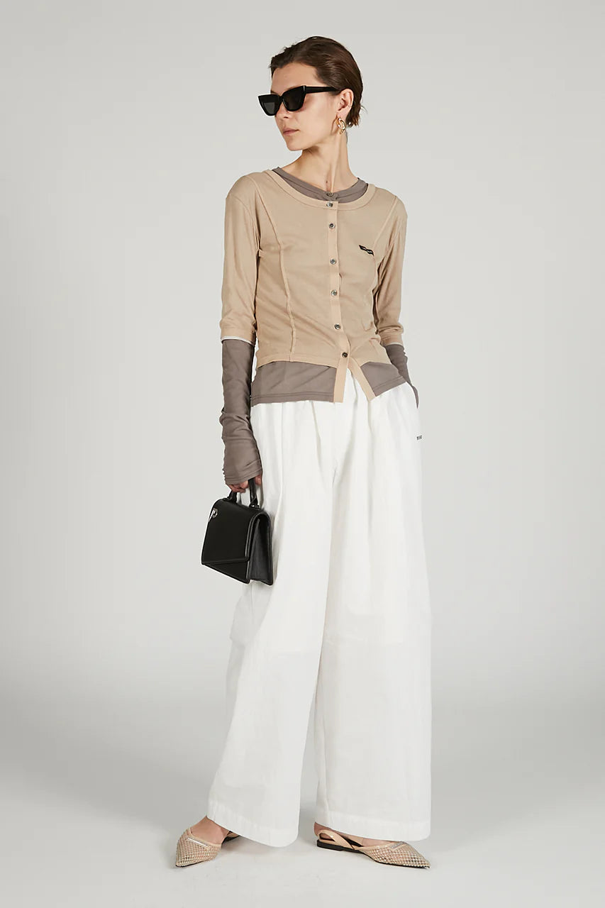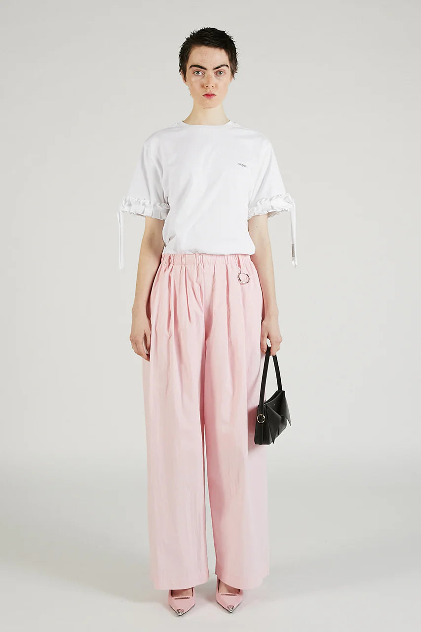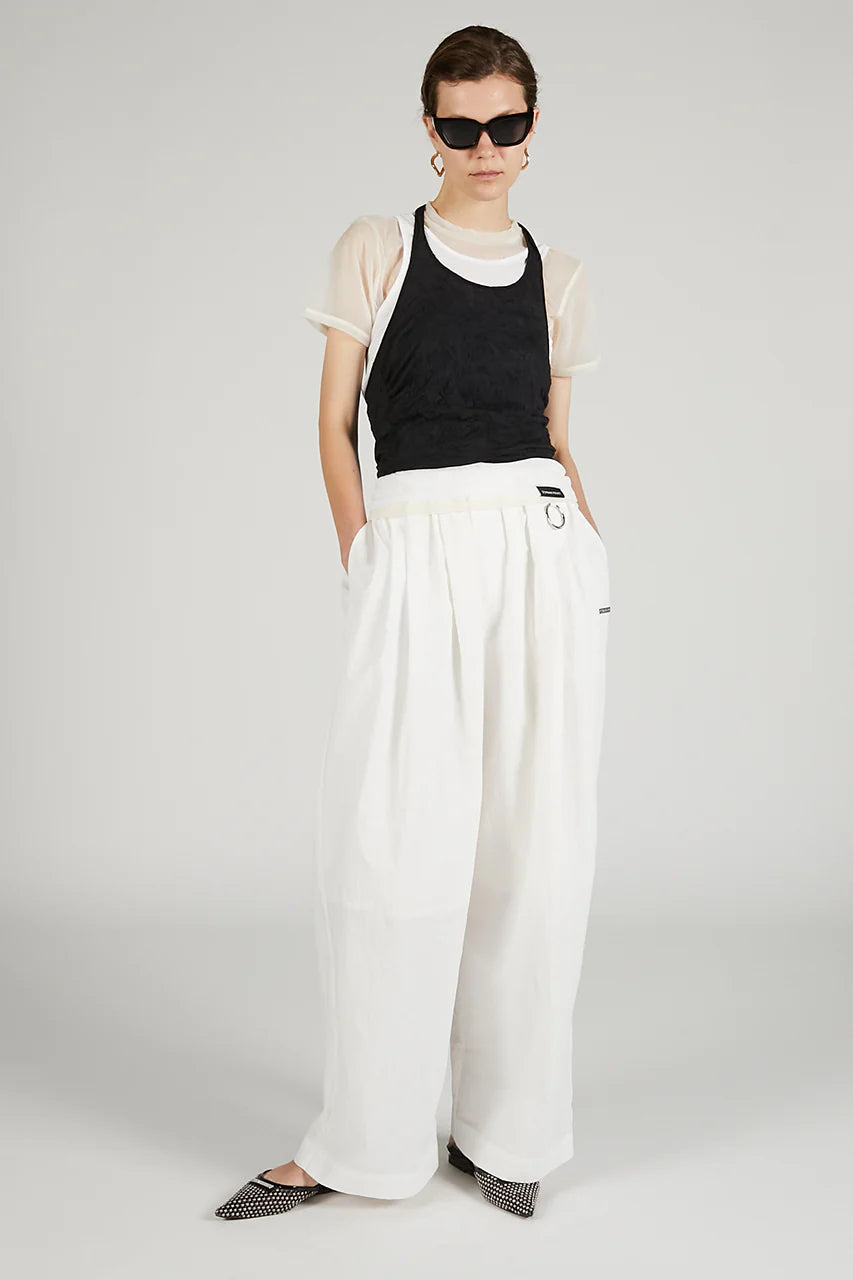 ウエスト全周ゴム仕様でストレスフリーな履き心地。