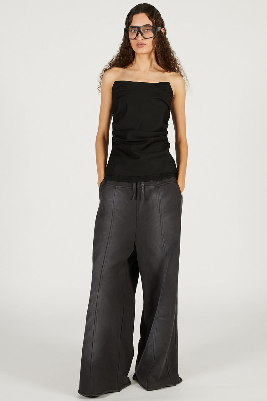 胸元のカッティングが構築的なベアトップ。