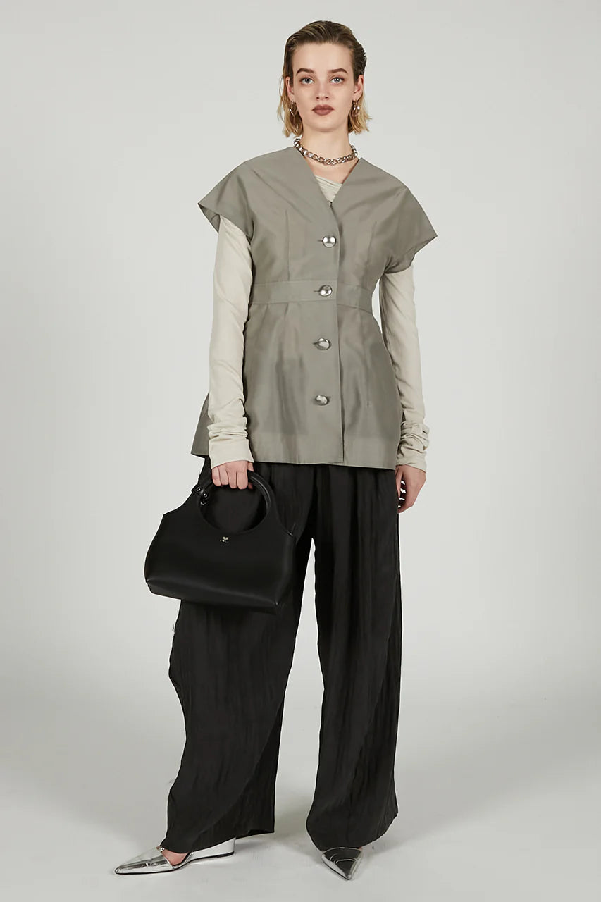 丸いフォルムのワイドレッグで、装飾を省いたミニマルでクリーンなルックスが魅力。