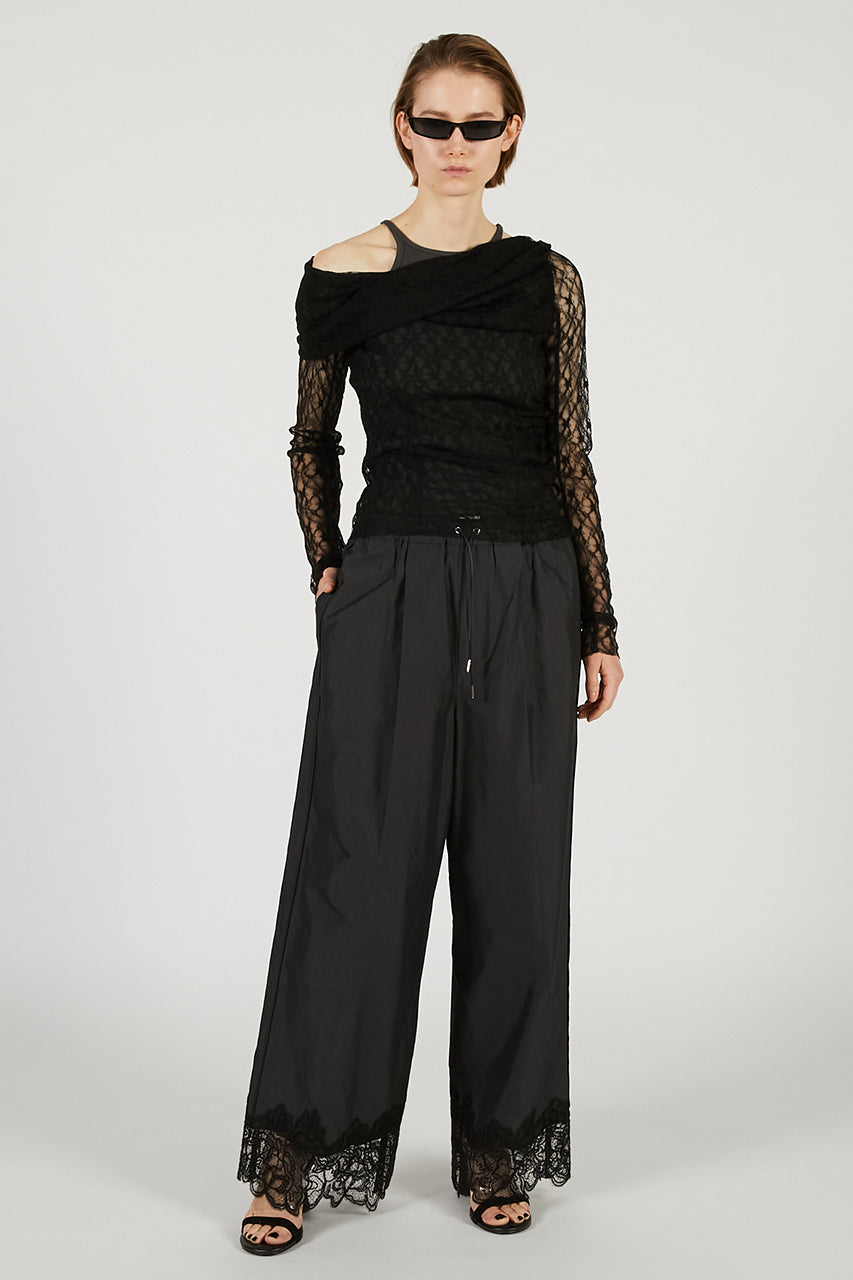 裾に施されたレースでラグジュアリーなムードをプラス。