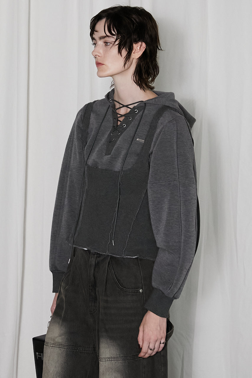 裾部分を上にあげ、ストラップを肩にかけるとトップスとしても着用可能。