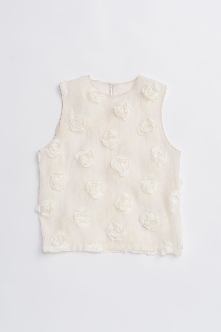 ベースが透け感のあるオーガンジーなのでインナーで遊ぶスタイリングがおすすめ。