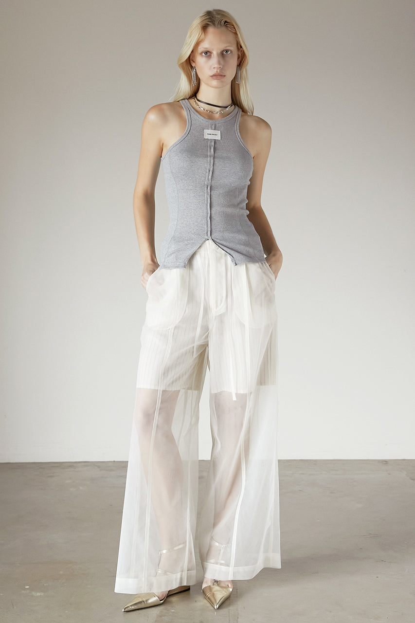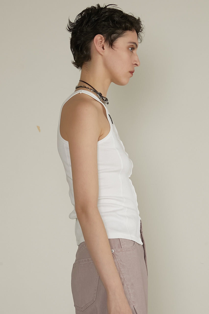フライスとリブを左右コンビで切り替えたタンクトップ。