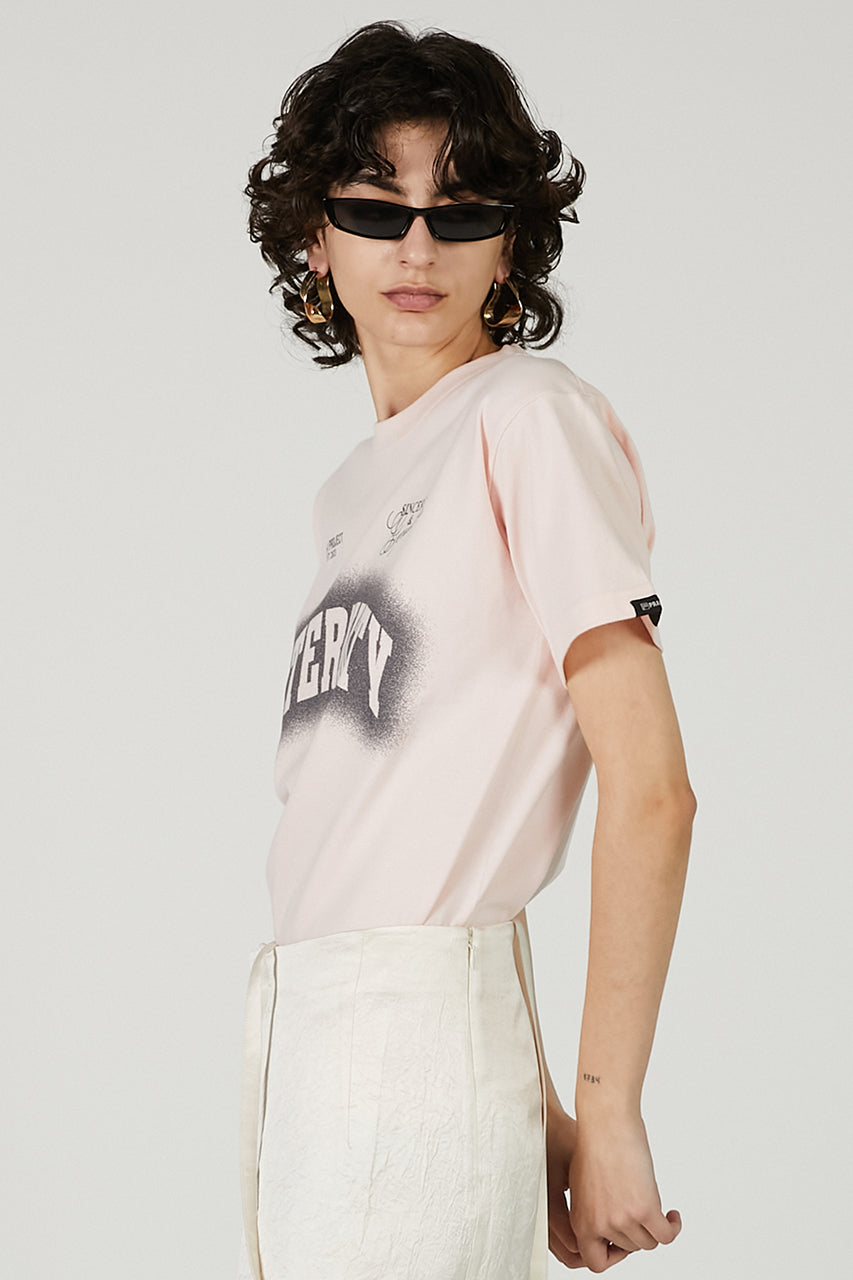 大胆なスプレープリントが目を惹く、1枚で主役になるTシャツ。