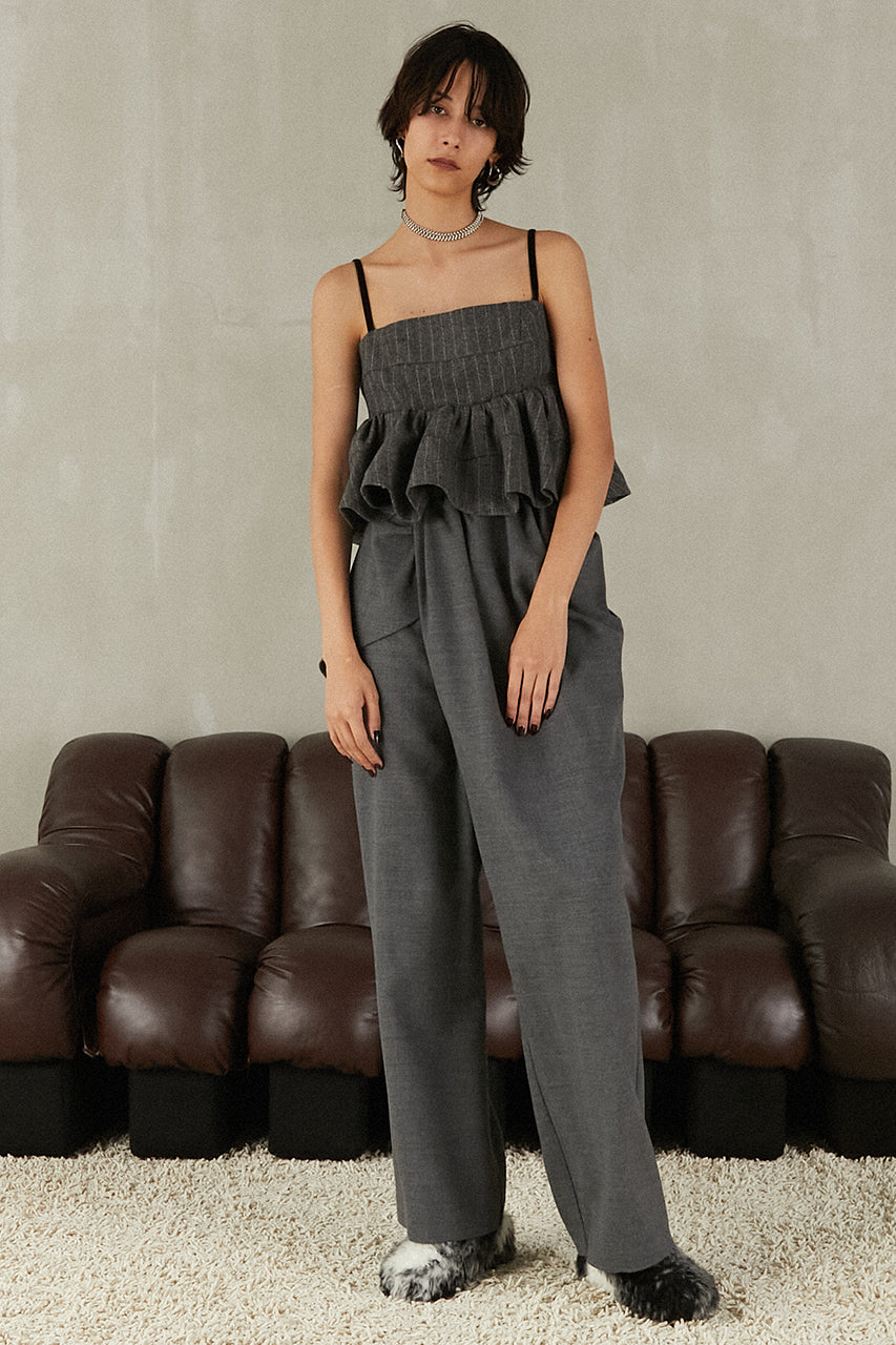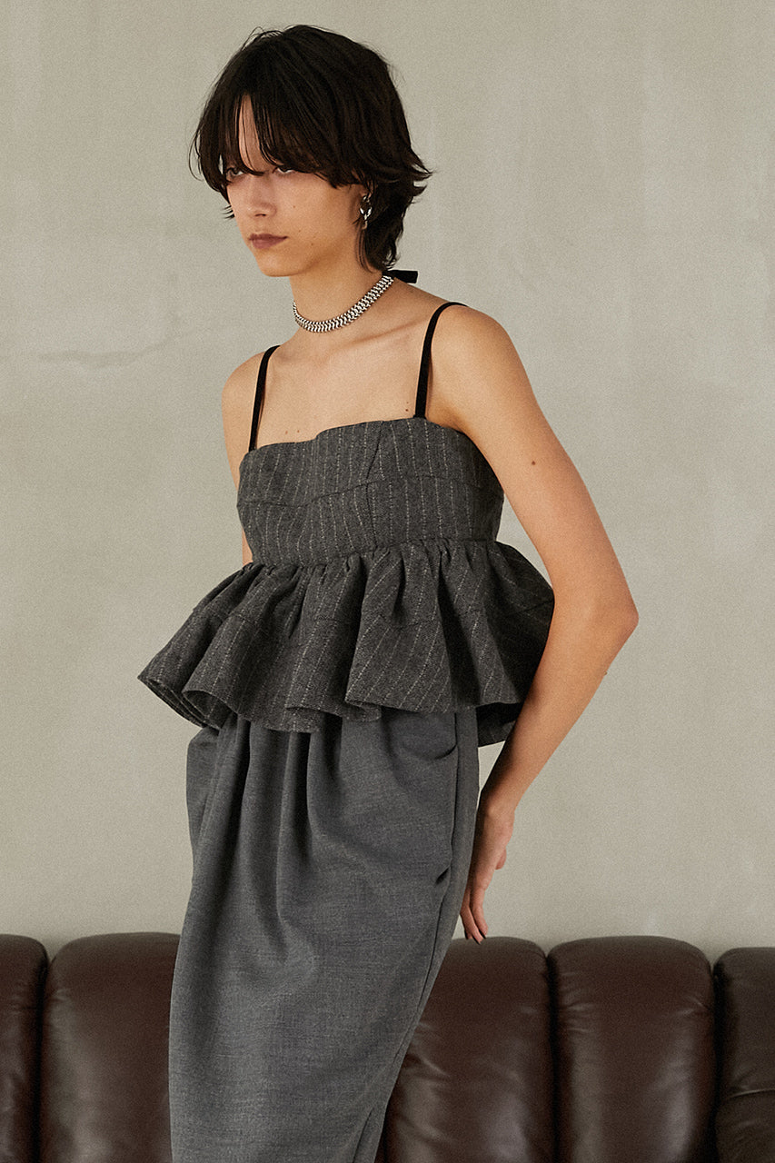 コンパクトな丈感が可愛いぺプラムビスチェ。