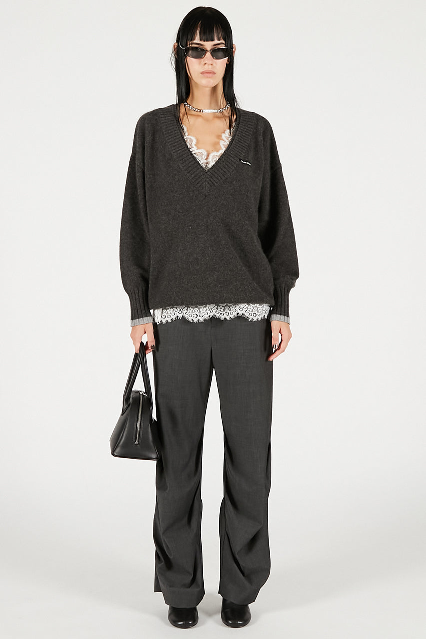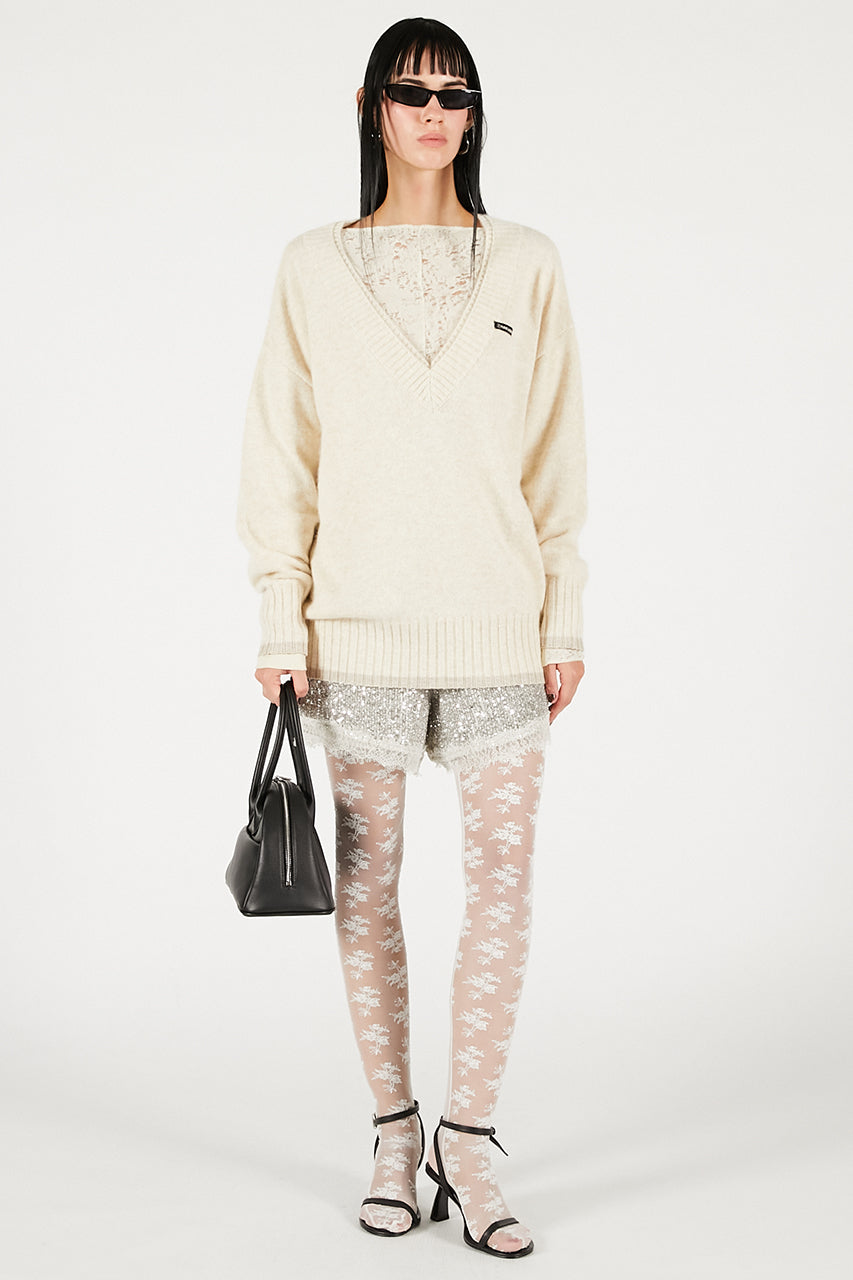 深めのVネックニットで女性らしさとラフさを兼ね備えたニットトップ。