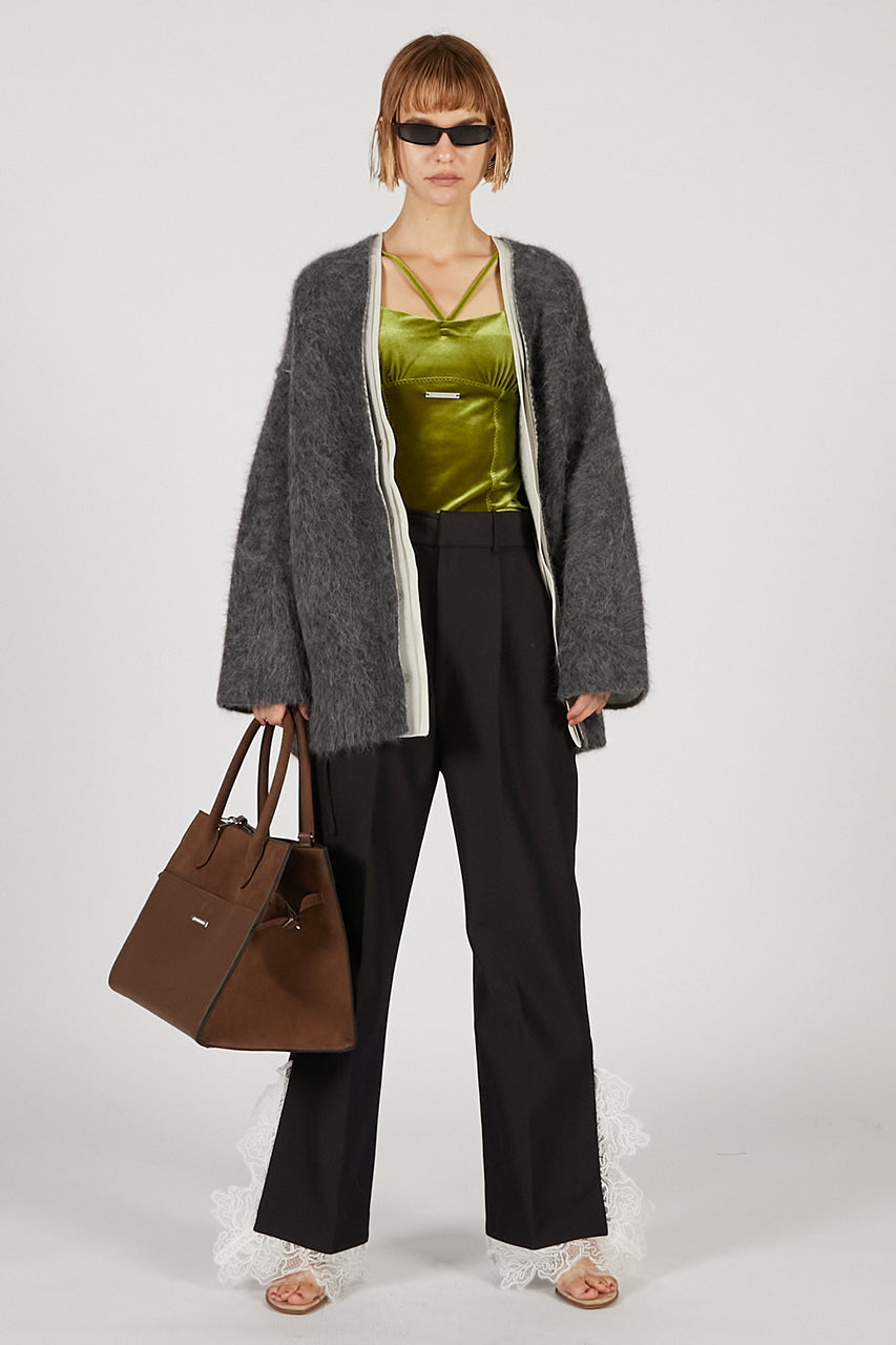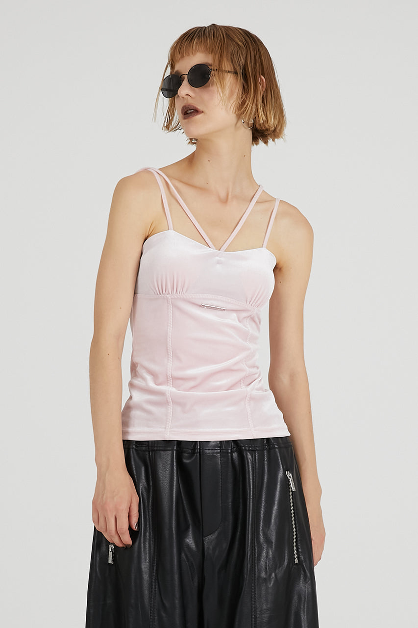 ベロアならではの光沢と発色の良さがスタイリングのアクセントに◎。