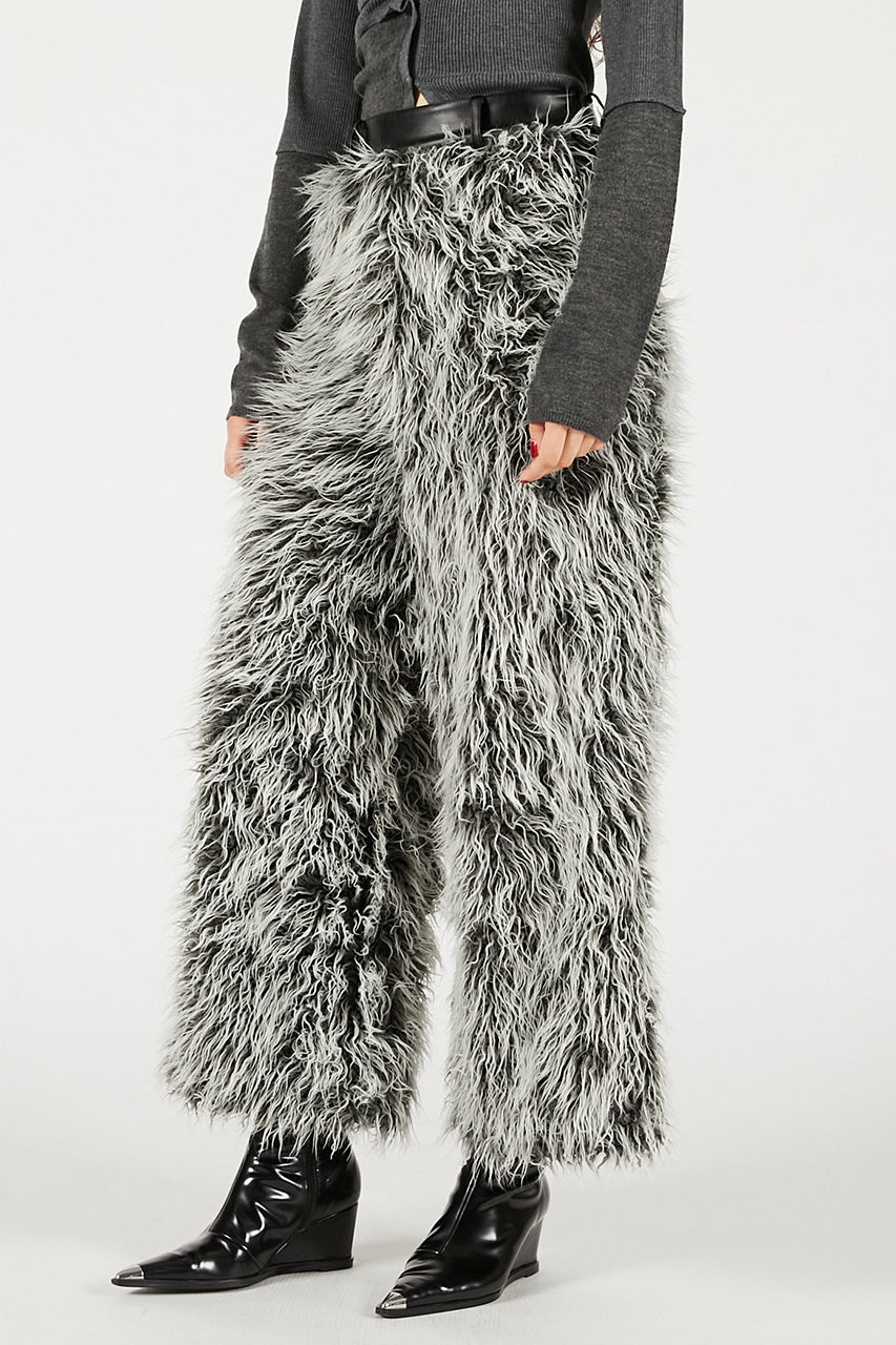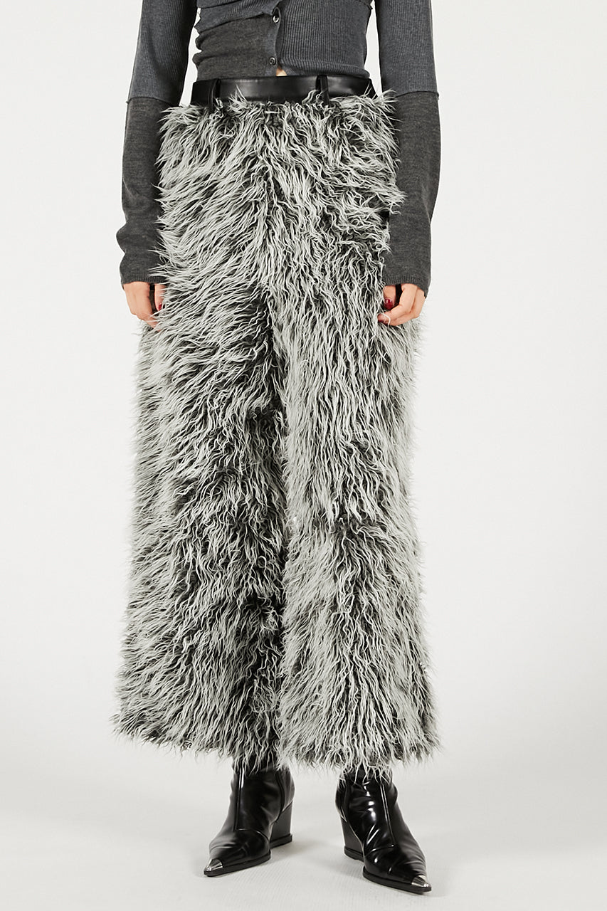 白とグレーをMIXした奥行きのある色合いが魅力のフェイクファーを使用。