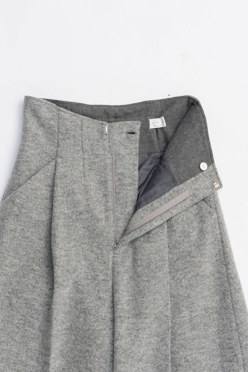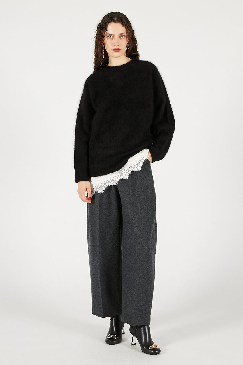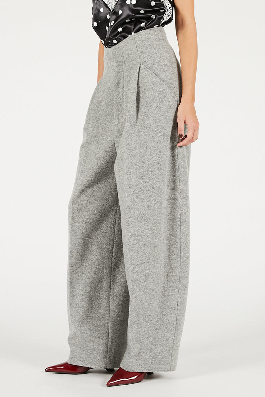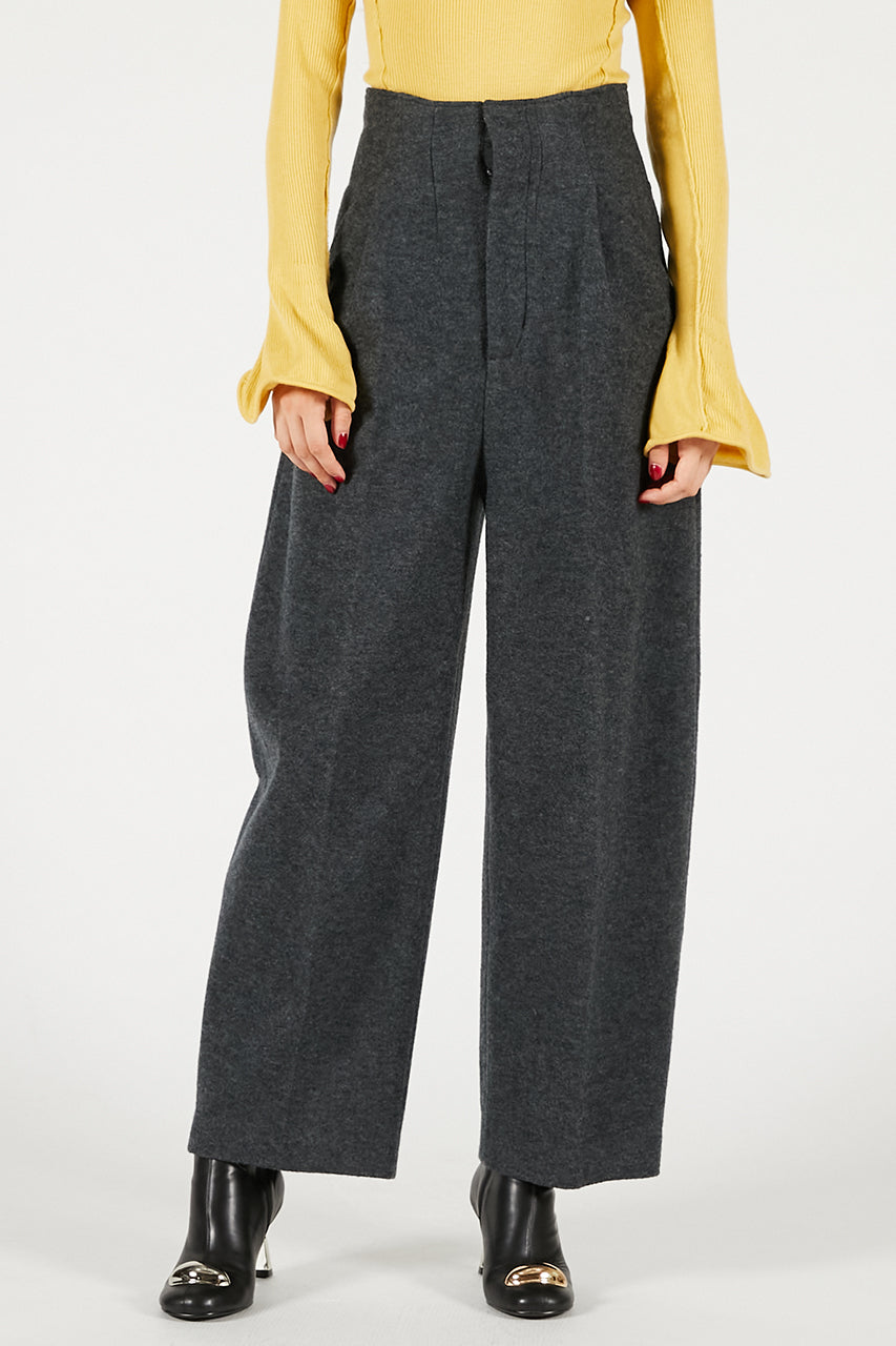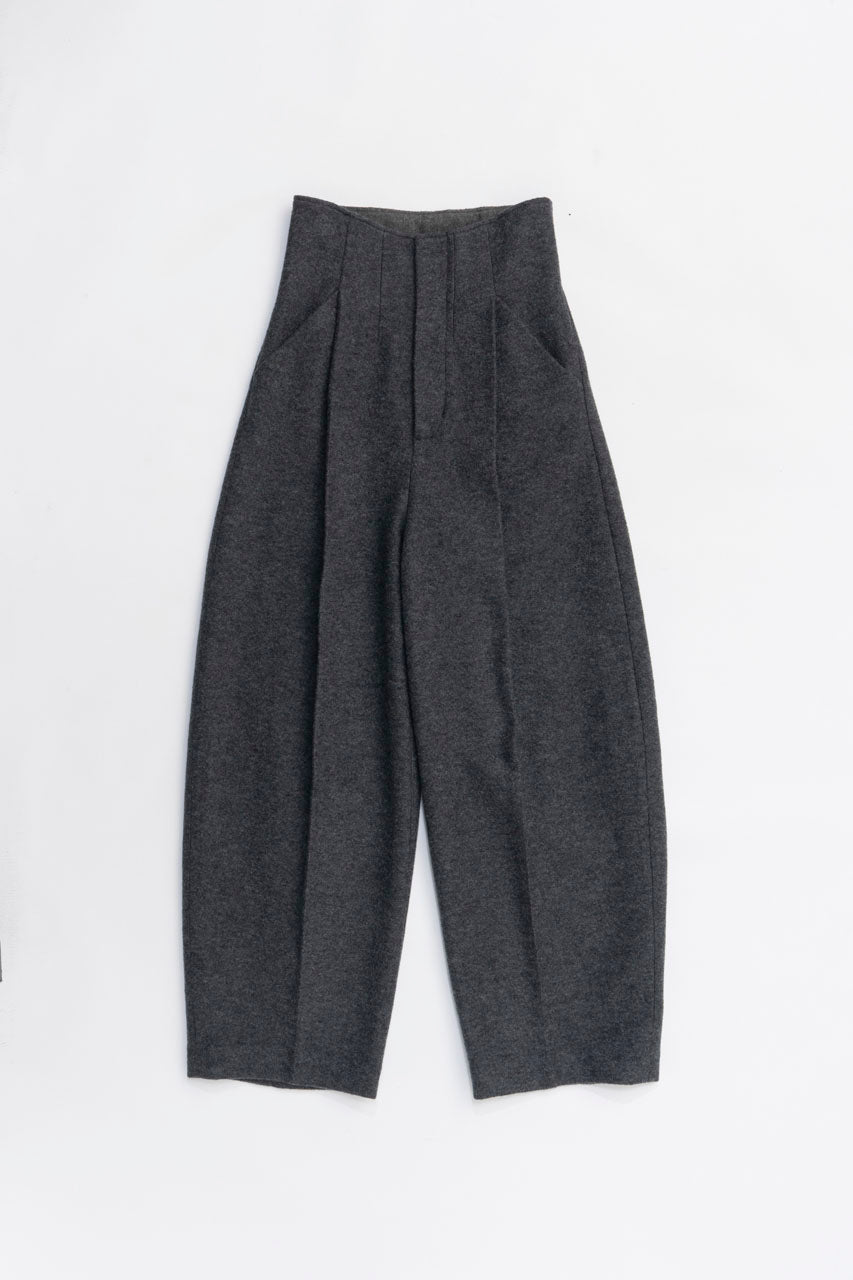 丸みを帯びたカーブシルエットが特徴のウールパンツ。