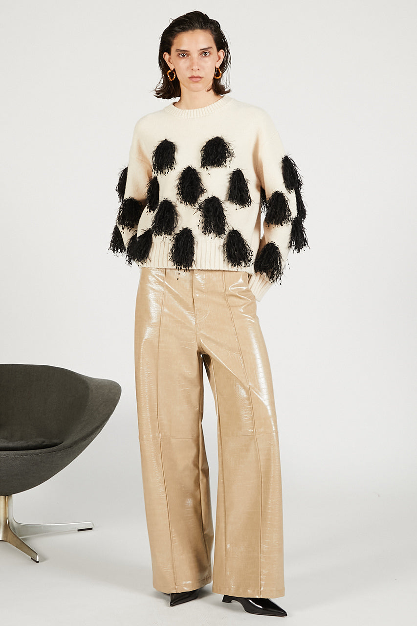 ゆったりしたトップスを合わせてもバランスよくすっきり見える、シルエットと素材感が魅力。