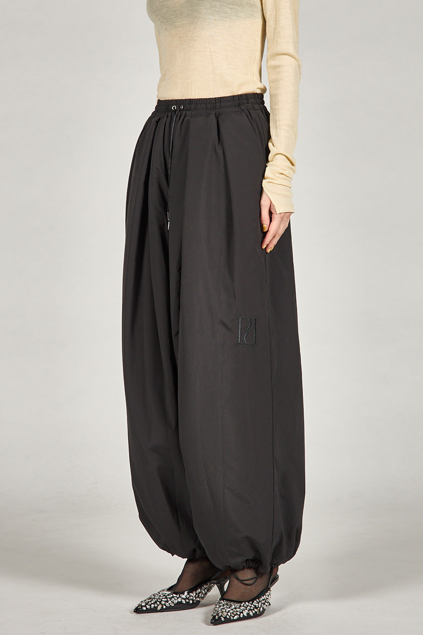 裾のドロストを絞ることで、バルーンシルエットがより強調できる仕様。