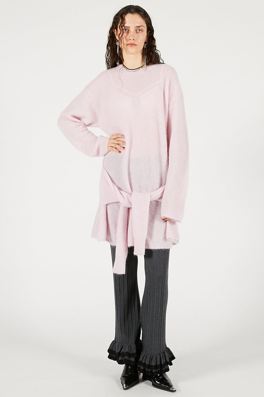 凹凸のあるランダムリブ編みで身体のラインを綺麗にカバー。