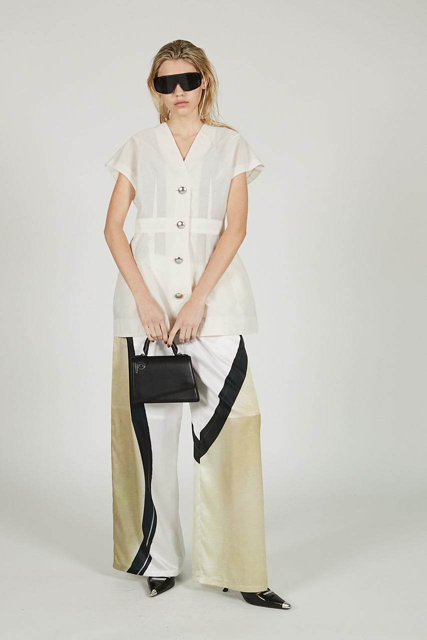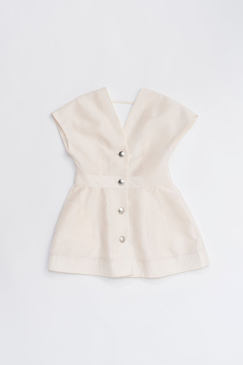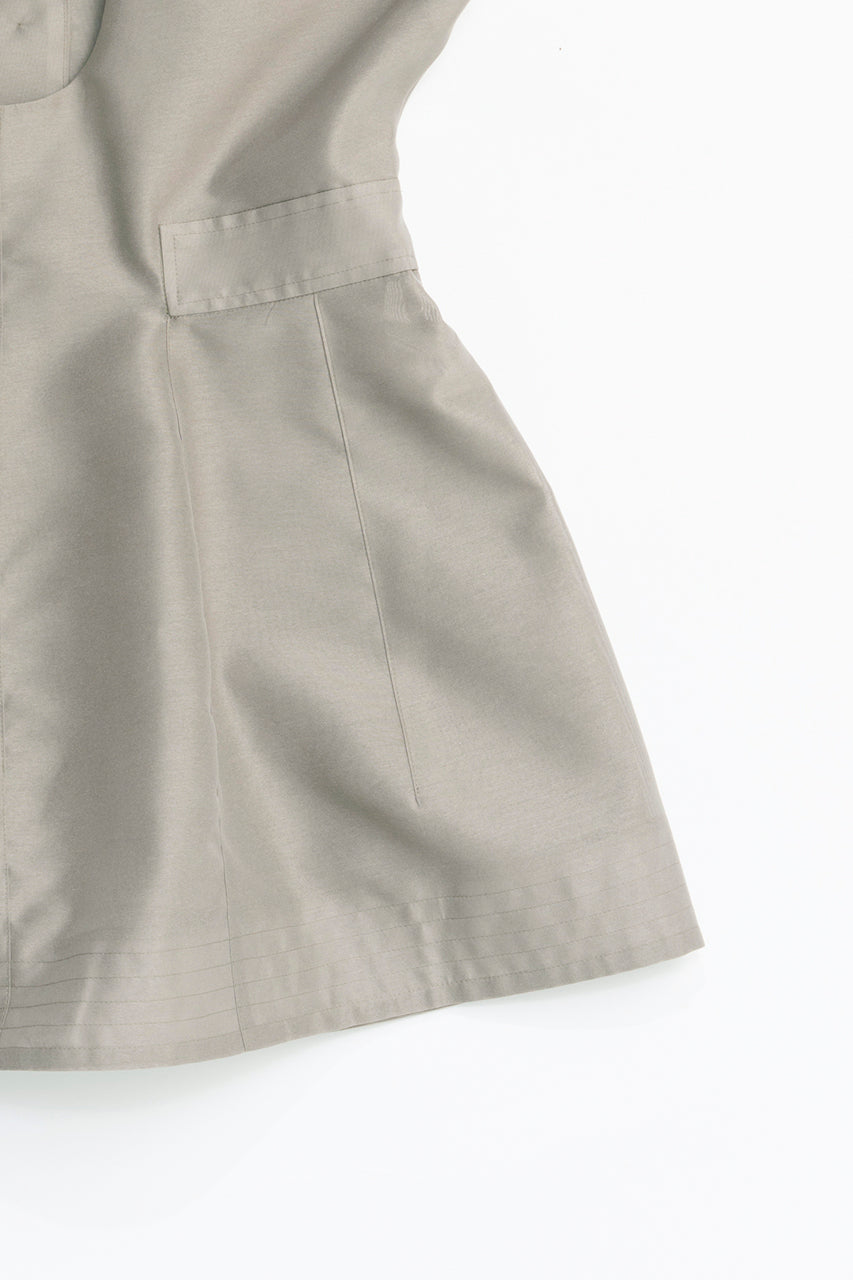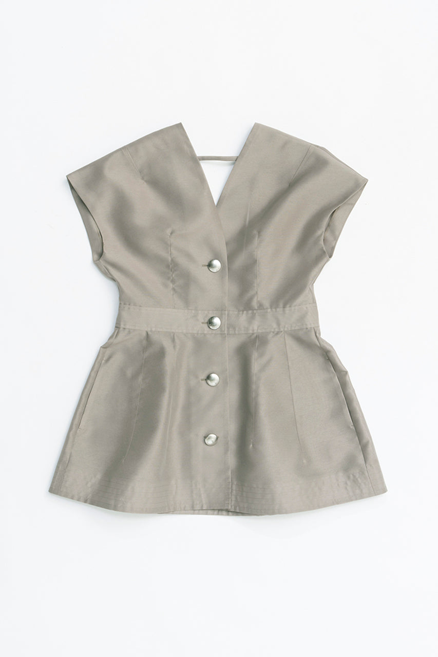 ジャケットとブラウスの中間のようなアイテムで、夏はトップスとして、肌寒い時期は羽織りとして着まわせる一着。
