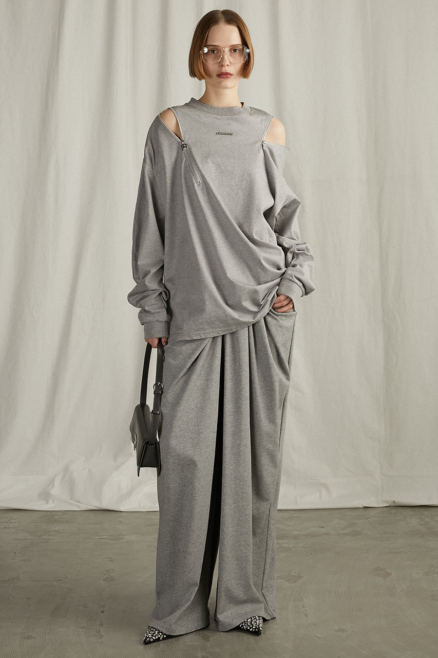 ゆるっとしたサイズ感でラフなムードもありながら、ボトムを選ばず着るだけでモードな印象をあたえるトップス。