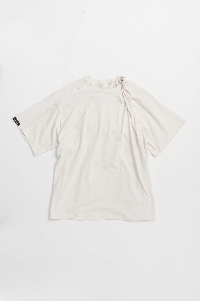 ツイストしたネックがポイントのオーバーTシャツ。