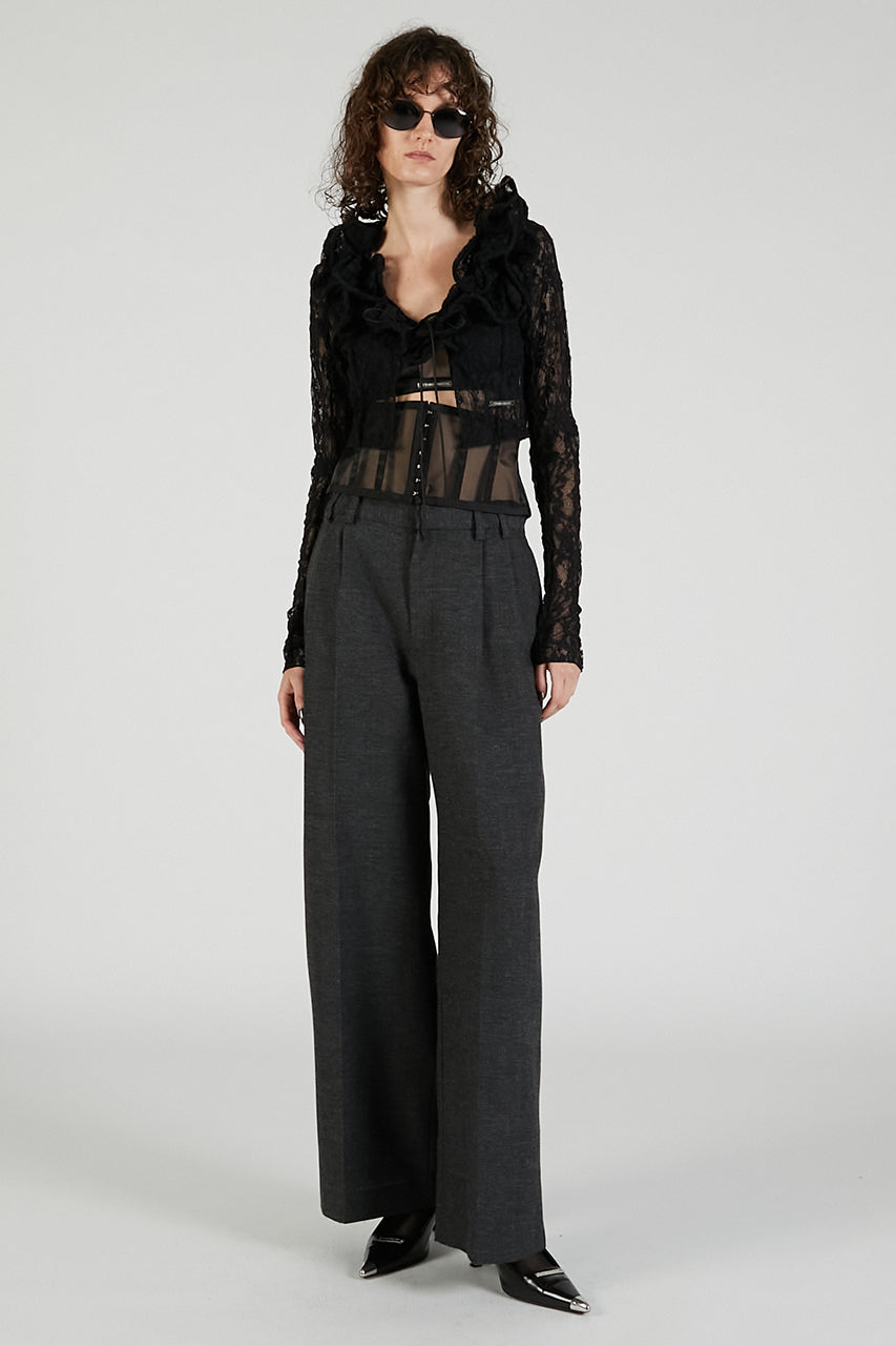 ワイヤーで独特のウェーブ感を出したフリルがキャッチーなカーディガン。