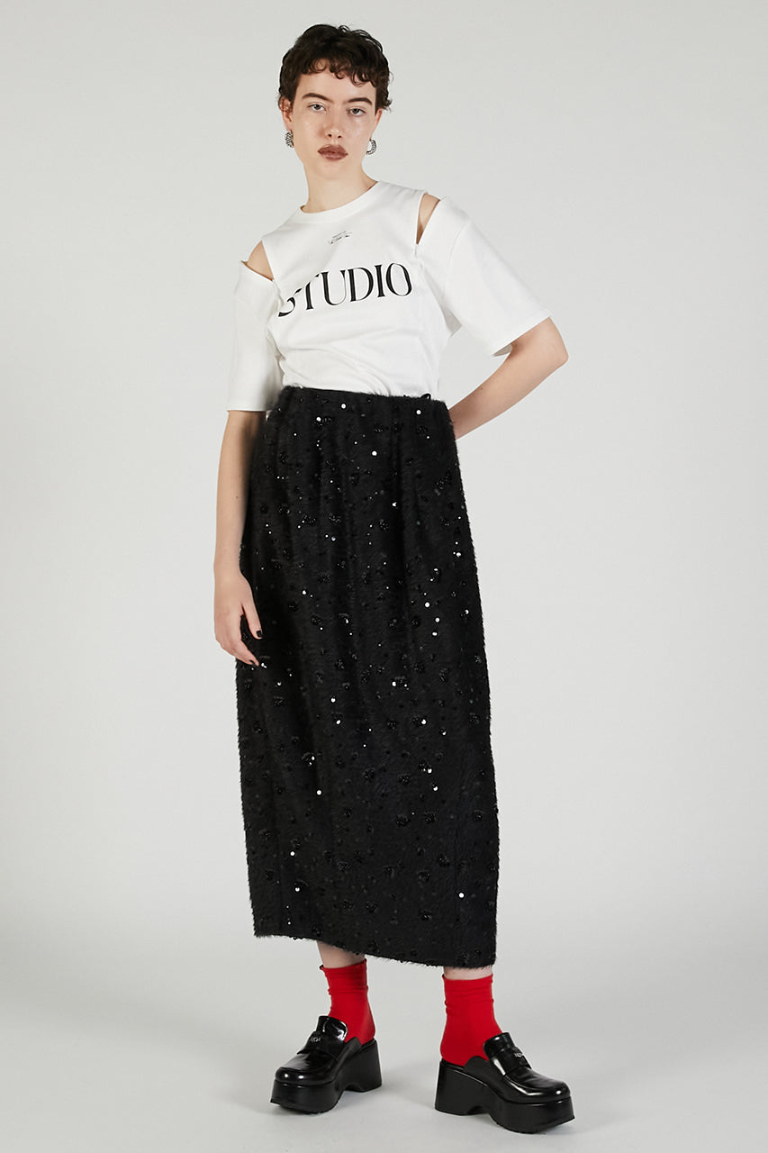 シェイプしたシルエットが構築的で、Tシャツだけどラフになりすぎないのがポイント。
